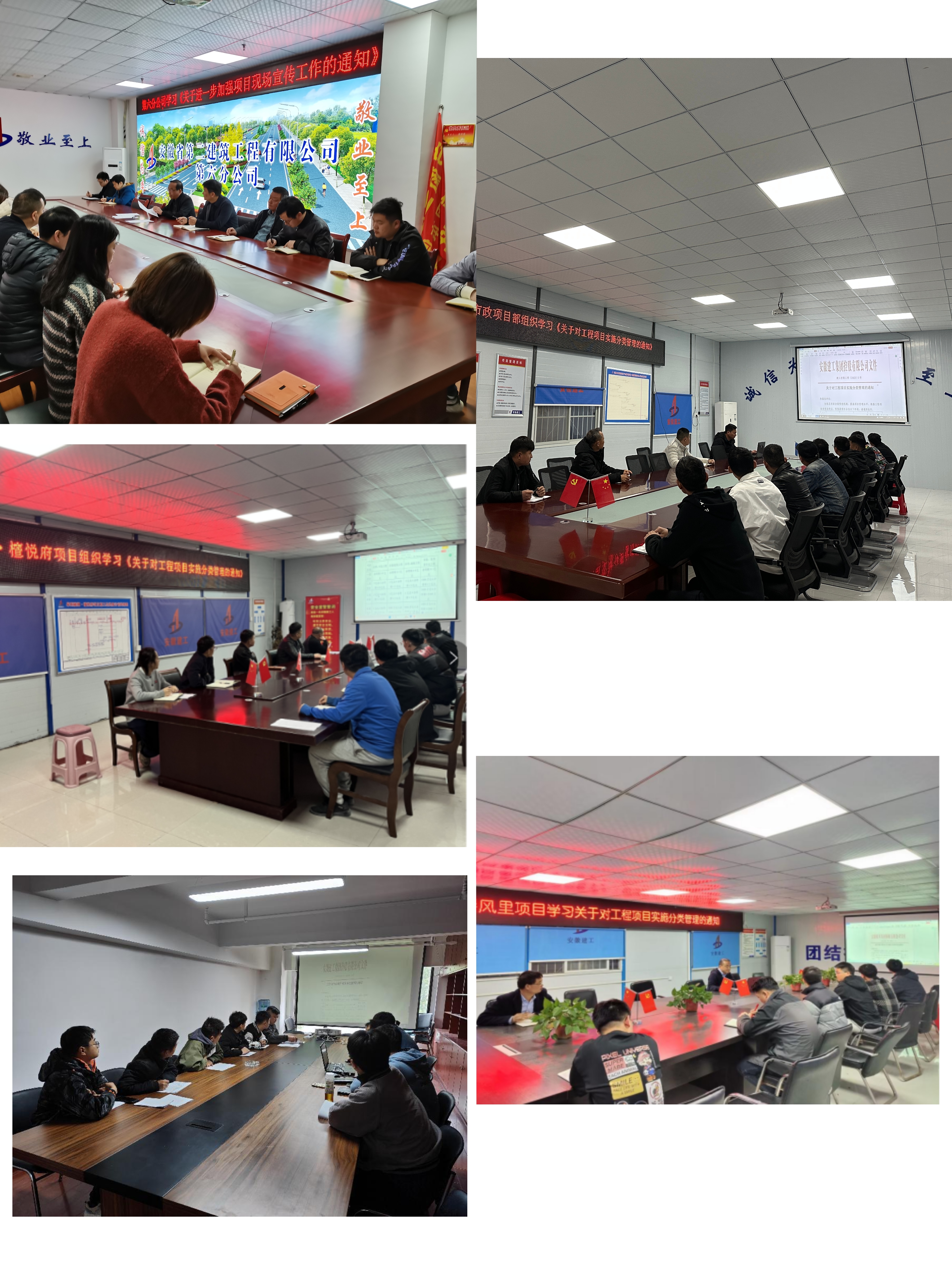 第六分公司組織分公司機關、項目部對建工控股工管下發的《關于對工程項目實施分類管理的通知》《關于進一步加強項目現場宣傳工作的通知 》《關于規范工程項目部機構設置和項目管理的通知(試行)》三份文件進行學習。
