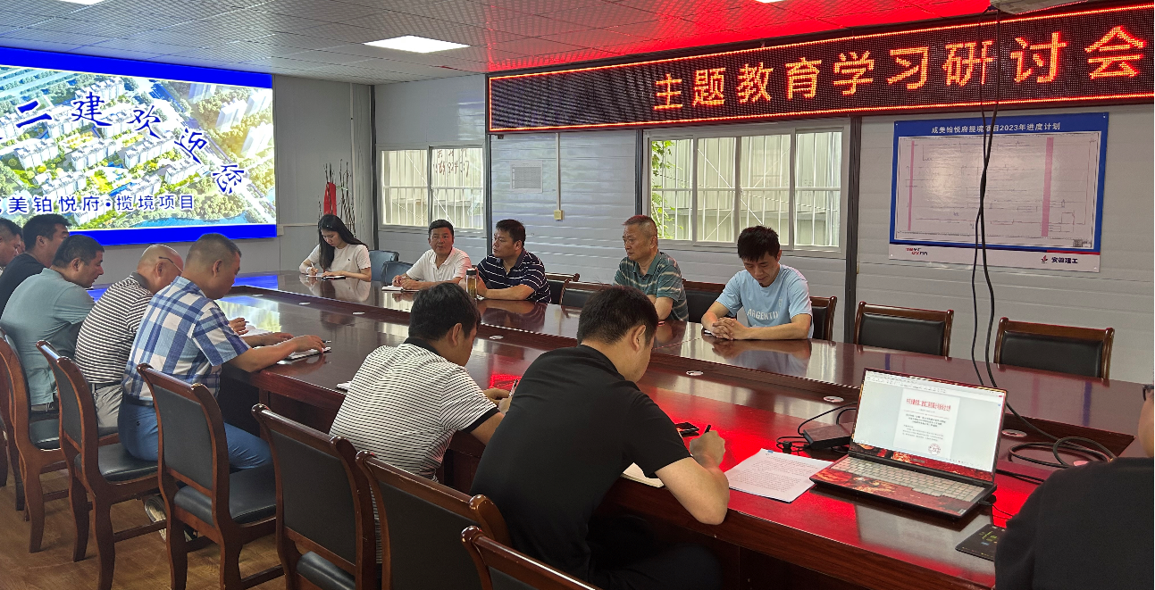 7月18日,第二公司黨支部書記黃業(yè)云至成美鉑悅府?dāng)埦稠椖?/span>開展主題教育“三問”交流研討。項目全體黨員參加。