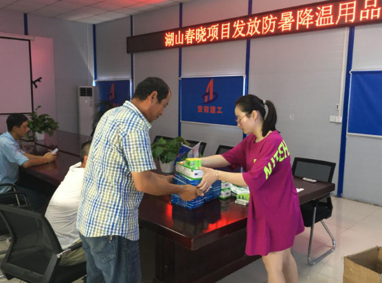 驕陽似火,酷暑難當。隨著聒噪的蟬鳴,又迎來了今年的高溫季節。自7月中旬,公司啟動“關愛一線、夏送清涼”慰問一線活動以來,六分公司領導班子先后走進文一·春風里、文一·錦門繁華里等項目部開展慰問活動。慰問期間,每到一處,不僅為一線職工送上礦泉水、毛巾、花露水、綠豆、藿香正氣水、防暑藥品等慰問品,還深入到項目施工現場,與職工親切交談,要求項目部做好高溫防暑工作,靈活安排作息時間,落實高溫天氣作業安全防范措施,切實做好當前防暑降溫工作,防止發生中暑事件,確保人身安全。