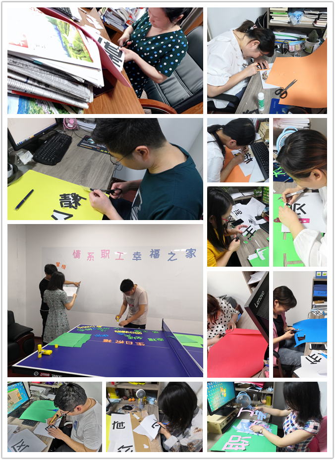 “你看我剪的就是這么完美”“對(duì)喲,你就是如此優(yōu)秀”,分公司機(jī)關(guān)全體員工齊動(dòng)員,相互協(xié)作,互相配合,你裁我剪,你剪我貼,在跳動(dòng)的文字中談工作、談理想,其樂(lè)融融,現(xiàn)場(chǎng)呈一片祥和之氣。當(dāng)成果呈現(xiàn),大家看著布置好的職工之家,滿眼都是成就的喜悅,臉上露出了愉快的笑容。