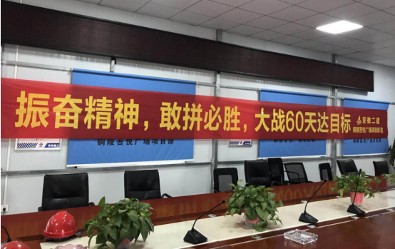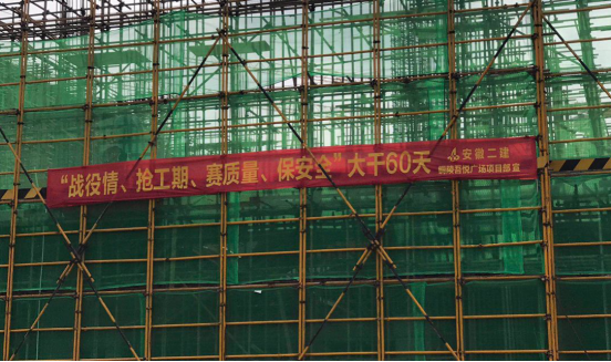 銅陵吾悅廣場(chǎng)項(xiàng)目計(jì)劃完成競(jìng)賽產(chǎn)值6000萬,為保證該目標(biāo)的完成,項(xiàng)目負(fù)責(zé)人與勞務(wù)班組簽訂勞動(dòng)競(jìng)賽責(zé)任狀,對(duì)表現(xiàn)優(yōu)異的班組予以獎(jiǎng)勵(lì),現(xiàn)場(chǎng)懸掛各類條幅宣傳大干60天勞動(dòng)競(jìng)賽精神。
