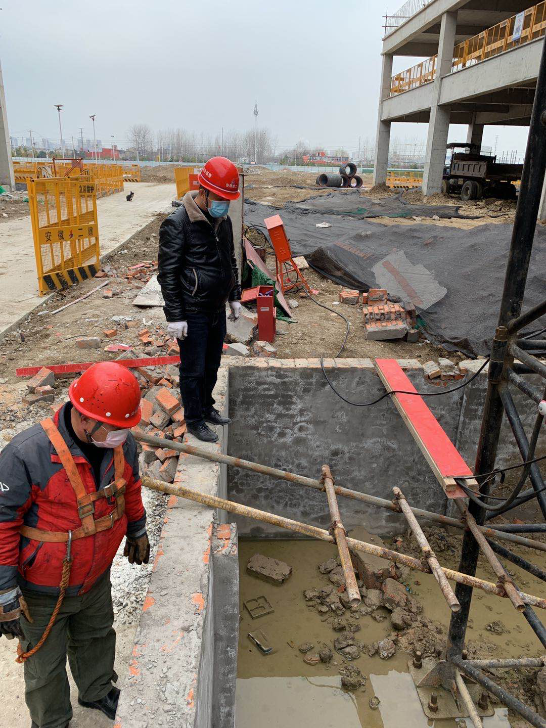 當前,在疫情防控和企業復工復產的關鍵時期,2月27日,安徽二建機械分公司經理周俊隨同安拆人員來到宿州遠東汽配城、蚌埠固鎮國際花都項目現場,實地進行安全督導,排查安全隱患、檢查疫情防控以及大型設備檢查和安全生產工作。