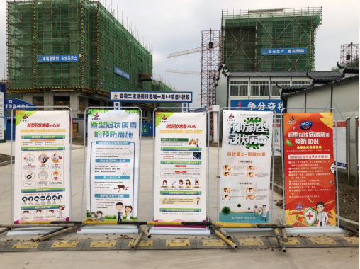 項目部按計劃搶抓工期,全力推進項目建設的同時,以做好項目現場疫情防控為前提,實行“半封閉+強防護”管理,在備足口罩、消毒液、洗手液等防護用品的同時,嚴格執行門禁、實名制管理制度,做好每天體溫測量和記錄臺賬,食堂堅持嚴把食品五道關,嚴格執行分餐制,避免聚集,提倡工人、管理人員居住在現場員工和工人宿舍,并按每間寢室最多居住不超過4人的標準安排住宿,最大程度上保障現場作業人員的身體健康與生命安全,確保項目復工安全有序進行。“36.6℃,體溫正常,請戴好口罩!”走進項目部,隨處可見新冠肺炎疫情防控的宣傳標語,廣播中一遍又一遍地重復播放著疫情防控的注意事項。
