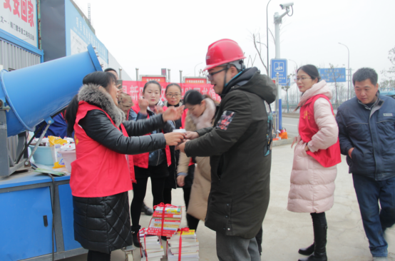 活動(dòng)現(xiàn)場(chǎng),項(xiàng)目部成員與志愿者們?cè)阱\門(mén)·繁華里工地門(mén)口支起愛(ài)心粥鋪,把一碗碗香暖四溢的臘八粥送到每一位民工手上,讓大家能夠在寒冷的冬季感受到社會(huì)的溫暖,體會(huì)到了社會(huì)各界對(duì)民工朋友們的關(guān)愛(ài),送粥的同時(shí),志愿者們還給民工朋友們送上各類書(shū)籍,讓民工朋友們也享受到閱讀的樂(lè)趣。