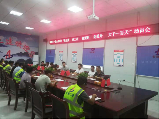 為保證施工現場大干要求,項目部精心組織,會上,項目經理阮飛對各部門進行明確分工,突出施工現場的重點難點問題,確保目標任務的落實,以保證施工生產任務如期完成,現場全線進入緊張而忙碌的施工狀態。阮飛強調:即使在大干過程中,也不能忽視安全、質量問題,安全、質檢和現場管理人員必須加強管理和日常巡視。確保施工現場無安全、質量隱患,保證“大干100天”勞動競賽的正常開展。