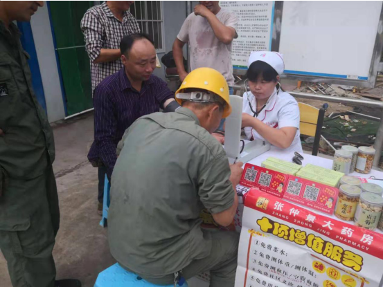 隨著人們的生活水平的不斷提高,飲食結構發生變化,高血壓等心腦血管疾病的患病率逐年上升,對職工健康構成了較大威脅,同時也不利于企業安全穩定健康發展。據了解,河南寶豐項目工人年齡普遍在四、五十歲左右,正是心腦血管疾病和高血壓高發年齡段。因此,本次項目黨支部攜手張仲景大藥房開展義診,為一線工人義務測量血壓并及時給予健康指導和咨詢,讓職工通過了解自己的血壓數值,對疾病早預防、早治療。