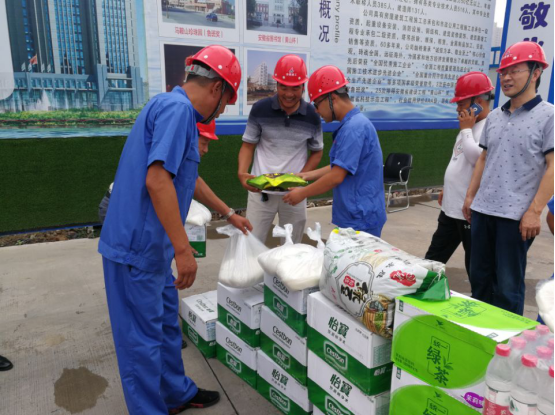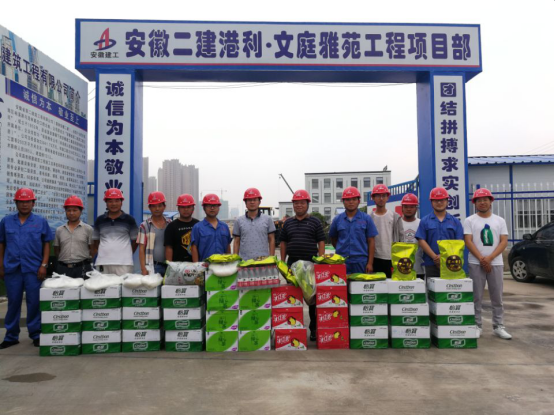 炎炎日正午,灼灼火俱燃,為做好一線工人防暑降溫工作,7月5日,四分公司支部書記董建民、生產副經理馬勁松等代表分公司赴淮北港利文庭雅苑項目開展“送清涼”活動。