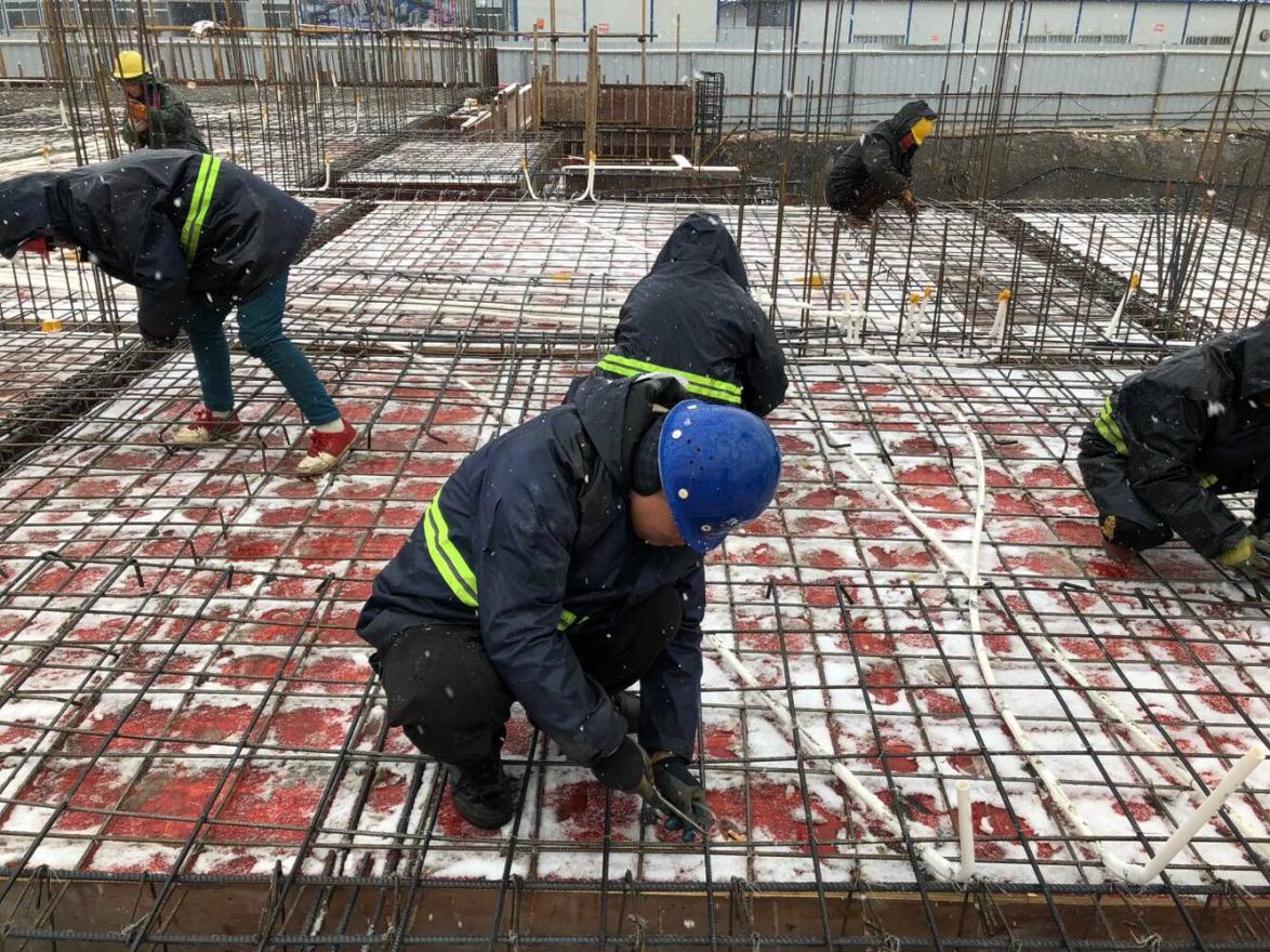 1月9日,一場大雪飛臨阜城大地,銀裝素裹。為保證項(xiàng)目春節(jié)前完成計(jì)劃任務(wù),實(shí)現(xiàn)對(duì)業(yè)主預(yù)售節(jié)點(diǎn)的承諾,二分公司臨泉匯鑫悅瀾灣一期B標(biāo)段項(xiàng)目部組織工人雪中搶工,管理人員迎風(fēng)冒雪指揮施工,現(xiàn)場一片火熱氣氛。大家紛紛表示,雪再大,風(fēng)再急,也要堅(jiān)決干下去。面對(duì)寒流,項(xiàng)目部提前策劃,編制應(yīng)急方案,擬定應(yīng)對(duì)措施,責(zé)任到人,盯緊安排,確保質(zhì)量安全,做好雪天施工保障工作。策劃先行,措施有力,相信項(xiàng)目部一定會(huì)兌現(xiàn)對(duì)業(yè)主的承諾,交上一份滿意的答卷!