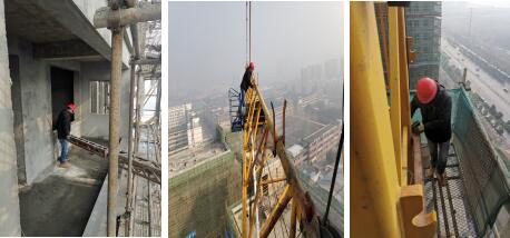 對塔吊大臂、附臂、附臂套架、人貨電梯標準節(jié)及導軌進行檢查