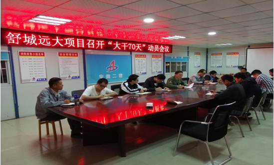 10日晚,為了響應(yīng)公司組織勞動(dòng)競賽的號召,激發(fā)項(xiàng)目上下的生產(chǎn)熱情,達(dá)到并超越既定的生產(chǎn)目標(biāo),舒城遠(yuǎn)大項(xiàng)目部全體管理人員在會(huì)議室召開“大干70天”勞動(dòng)競賽動(dòng)員會(huì)議。