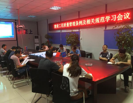 9月2日,項目在施工現場及辦公室醒目位置懸掛橫幅,在技術負責人的帶領下學習了相關法律、法規、規范,形成了濃厚的活動氛圍,強化了質量管理工作。項目部認真組織開展工程質量專項自查工作,加強質量管理控制和責任落實,強化質量管控意識,明確項目質量管理的重點與方向,使質量意識滲透到每一位員工心中。