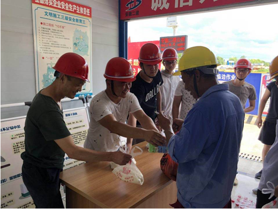 為了響應(yīng)公司開展的防暑降溫送清涼活動(dòng),關(guān)愛在高溫一線作業(yè)的員工,項(xiàng)目部領(lǐng)導(dǎo)分三組帶隊(duì)將冰涼的礦泉水送到員工手中。一句普通的叮囑拉近了大家的關(guān)系,也得到了一線員工的稱贊,既鼓舞了全體員工的干勁,同時(shí)也加強(qiáng)了對現(xiàn)場安全、防暑降溫的宣貫。