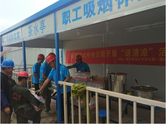 連日來氣溫居高不下,舒城遠大中央公園項目部于6月27日下午在施工現場開展了為工友“送清涼”活動,表達了項目部對奮戰在高溫酷暑下員工的關懷與慰問。
