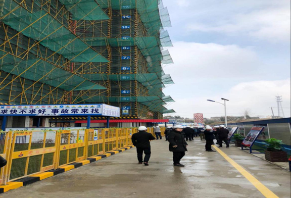 在項目施工現場,對項目的布局、管理標準規范、工程實體、新技術應用等亮點部位進行觀摩。項目部負責人向大家詳細介紹了項目的成本控制、質量管控、安全文明施工等相關情況,尤其在格構式塔吊基礎的利用、無料臺施工電梯的設計、套扣式腳手架的使用、現場循環水的收集再利用、VR安全體驗新技術的應用等方面給大家提供了好的借鑒。