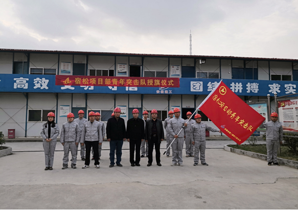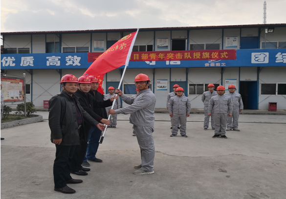 11月20日,宿松項目部結(jié)合公司“大干60天”勞動競賽活動熱潮,在公司工會、團委的支持下組建了安徽二建首支“青年突擊隊”,公司工會主席李林、副主席蒯家江、分公司支部書記陳習武應邀參加了“青年突擊隊”授旗儀式并進行授旗。