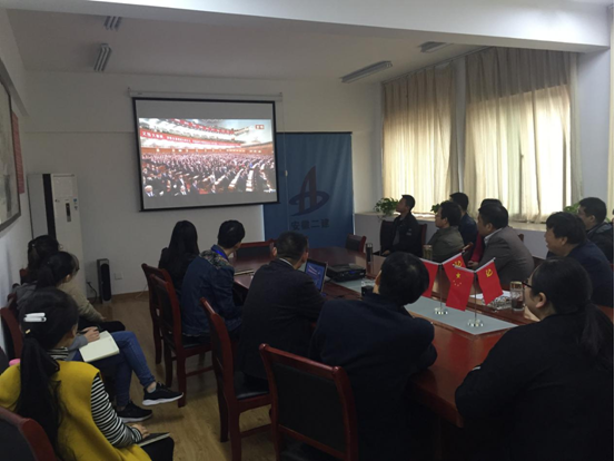 10月18日上午9時,四分公司機關干部職工在會議室集中收看黨的十九大開幕式,認真聆聽習近平同志所作的十九大報告。