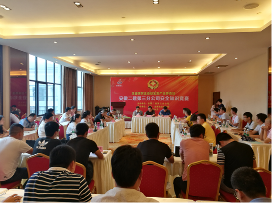 下午,在宿松漢爵賓館4樓會議室開展了一場有聲有色的安全知識競賽活動。本次安全知識競賽涉及施工安全交底、大型機械、模板支撐、等共計400題,由分公司6個項目部選拔出的18名選手代表參加。最終宿松項目、肥西項目、太和項目分別獲得一、二、三等獎。