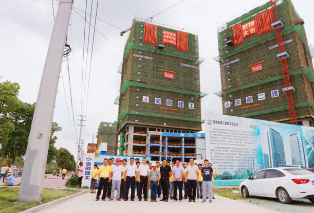 7月1日,由安徽二建承建的太和縣經開區現代醫藥產業及發藝產業基礎配套工程PPP項目——生物島一期工程施工主體結構封頂。太和縣重點工程建設管理局、安建投資太和安建、安徽二建有關領導及項目管理人員、工友等100余人參加封頂儀式。