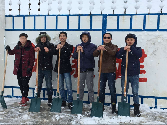 寒風(fēng)陣陣,雪花飄飄,厚厚的積雪讓人步履艱難,但這并沒有阻擋隊(duì)伍的鏟雪進(jìn)度,每一鍬、每一鏟,都凝結(jié)大家的付出和努力。經(jīng)過奮戰(zhàn),道路,院內(nèi)積雪都被清掃干凈,確保了道路暢通和人員安全,極大的方便了項(xiàng)目全體人員的出行,項(xiàng)目建設(shè)進(jìn)度得以正常推進(jìn)。