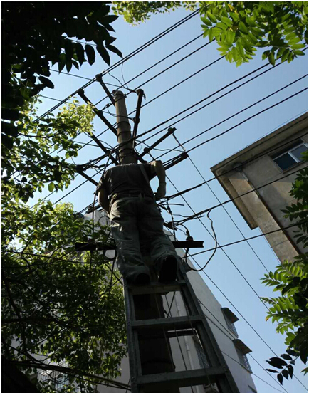 7月23日,原二公司生活基地由于供電線路嚴(yán)重老化,發(fā)生線路著火斷電事故,后勤綜合服務(wù)部接到險(xiǎn)情報(bào)告后,立即組織搶修隊(duì)伍奔赴現(xiàn)場(chǎng),維修人員不懼高溫酷暑,頂著烈日,經(jīng)過幾個(gè)小時(shí)的高空作業(yè),及時(shí)恢復(fù)了供電。
