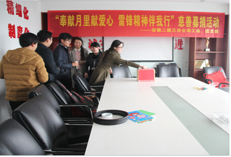 3月為全國學(xué)雷鋒月,三分公司團支部、工會舉辦“奉獻月里獻愛心 雷鋒精神伴我行”活動,以愛心募捐方式為貧困學(xué)生獻上自己的一份微薄之力。通過一個多星期的信息收集整理,確定了此次愛心資助對象劉雅芹同學(xué)。通過走訪得知,劉雅芹現(xiàn)就讀大一,家里三口人擠在兩間破瓦屋內(nèi)。奶奶年邁多病,父親單身,劉雅芹為其養(yǎng)女,家中僅靠父親一人打零工來維持奶奶的醫(yī)藥費和劉雅芹的學(xué)費及一家人的日常生活。此次活動得到了公司領(lǐng)導(dǎo)、同事的大力支持,大家在公司會議室舉行了募捐儀式,同時在分公司所屬項目部開展募捐活動,大家踴躍參與,獻上自己的一份愛心,一共為劉雅芹同學(xué)募捐學(xué)費4000元。